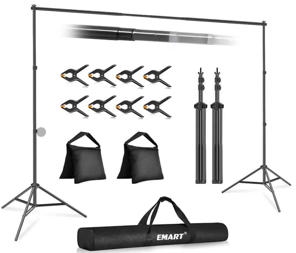Adjustable width and height photo back drop stand. You provide the backdrop or we have a limited choice.
